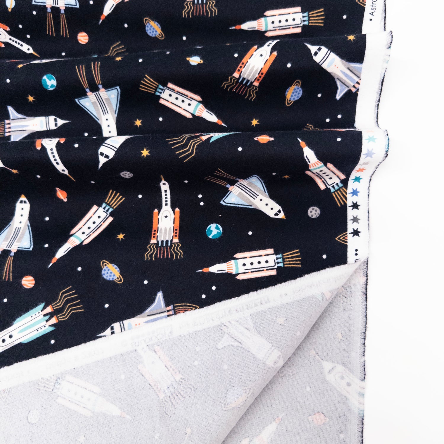 The softest cotton flannel with a blasting rocket print, who wouldn't want PJ's from this fabric!