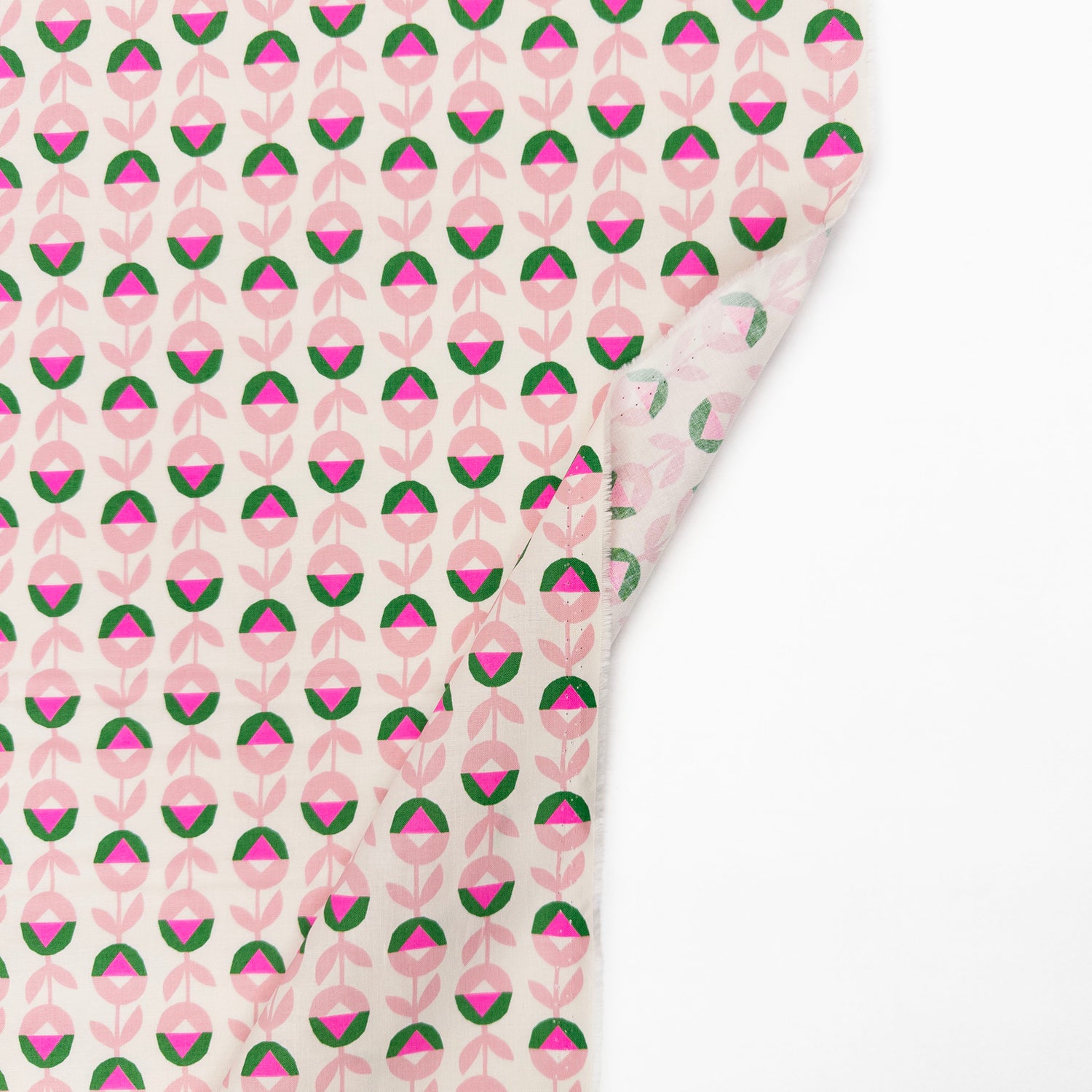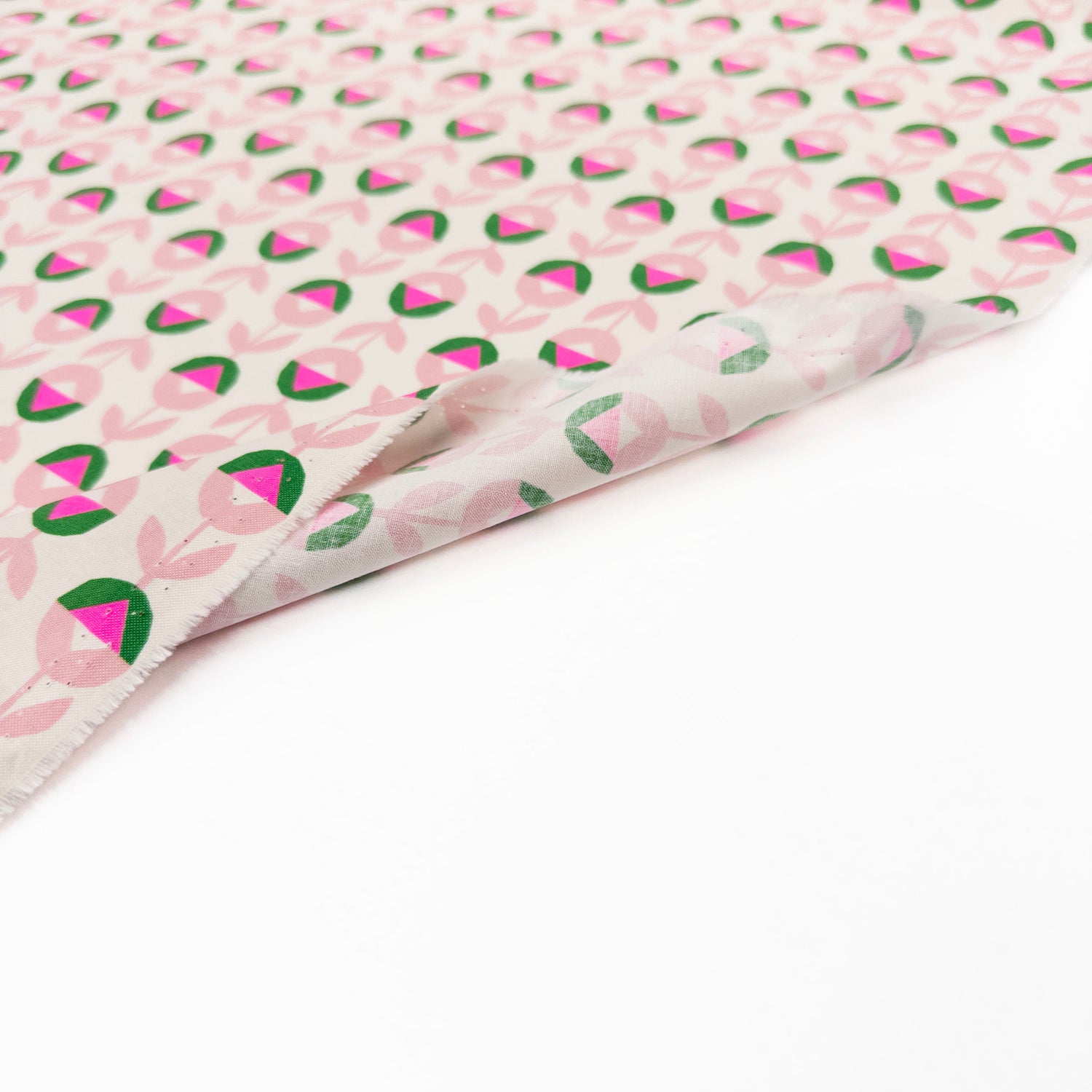 Eye Candy is an abstract botanical print in bold colors. The base is a tight weave cotton with a smooth hand. This fabric is a great choice for tops, skirts, pj's and crafts.