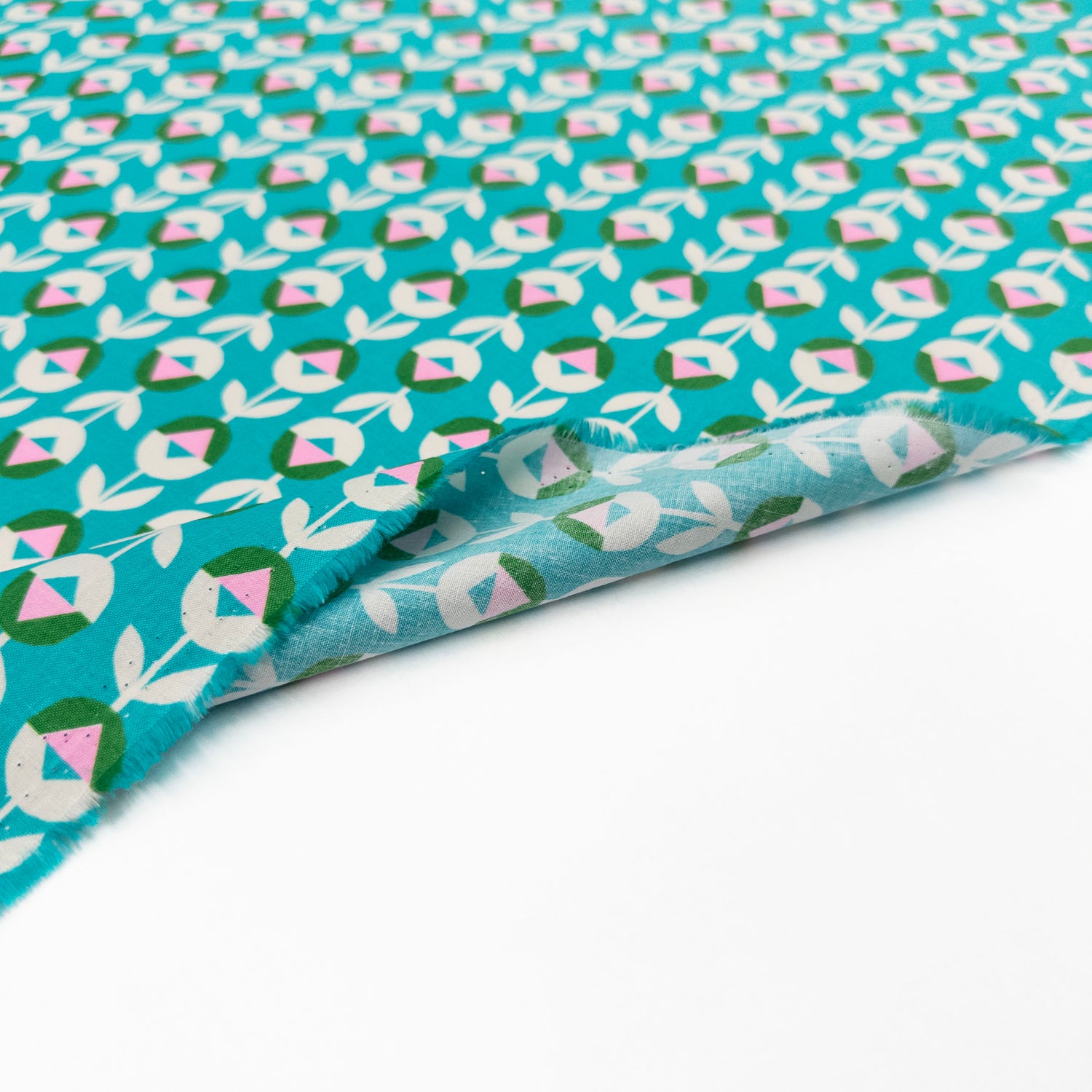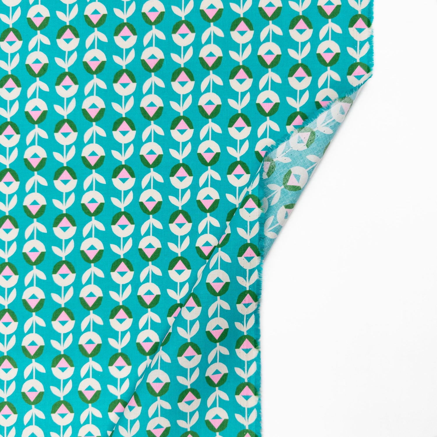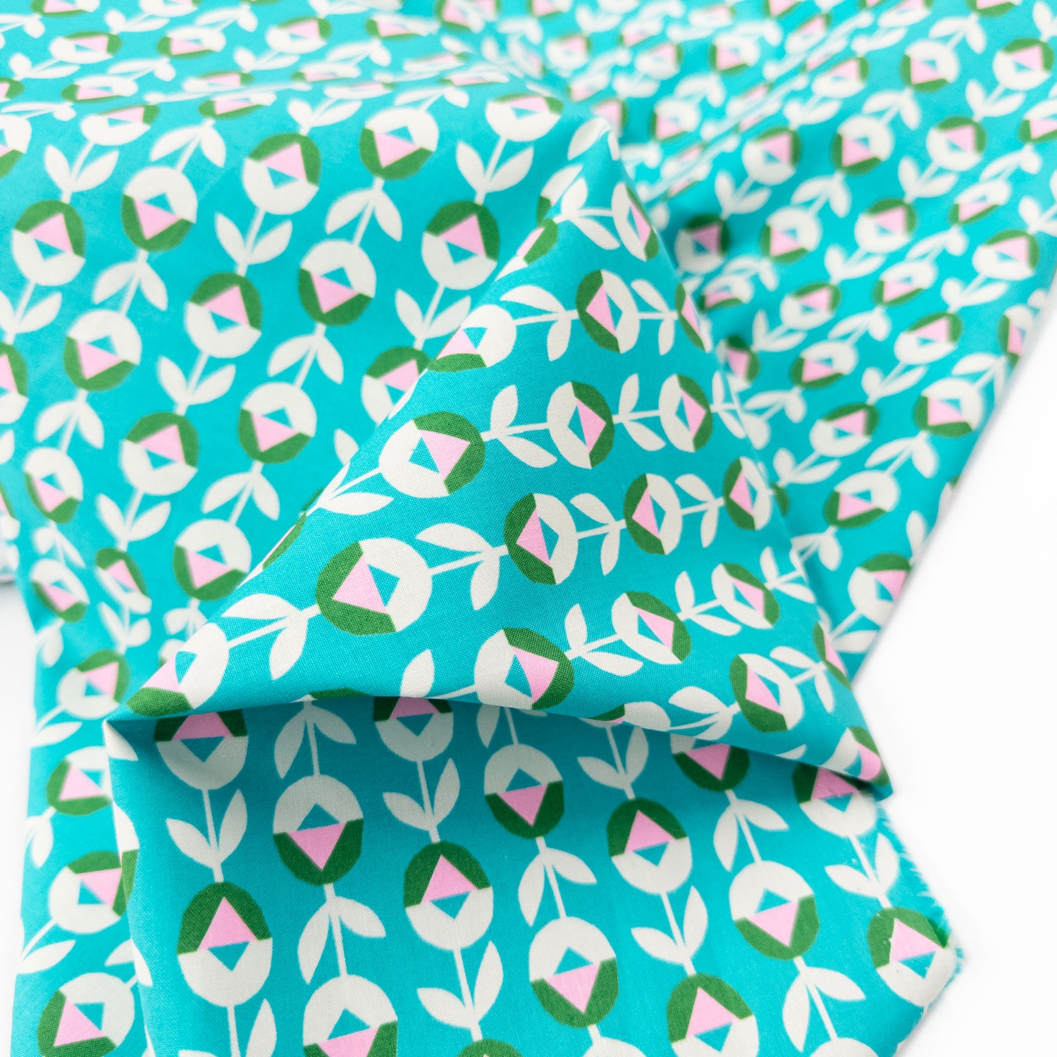 Eye Candy is an abstract botanical print in bold colors. The base is a tight weave cotton with a smooth hand. This fabric is a great choice for tops, skirts, pj's and crafts.